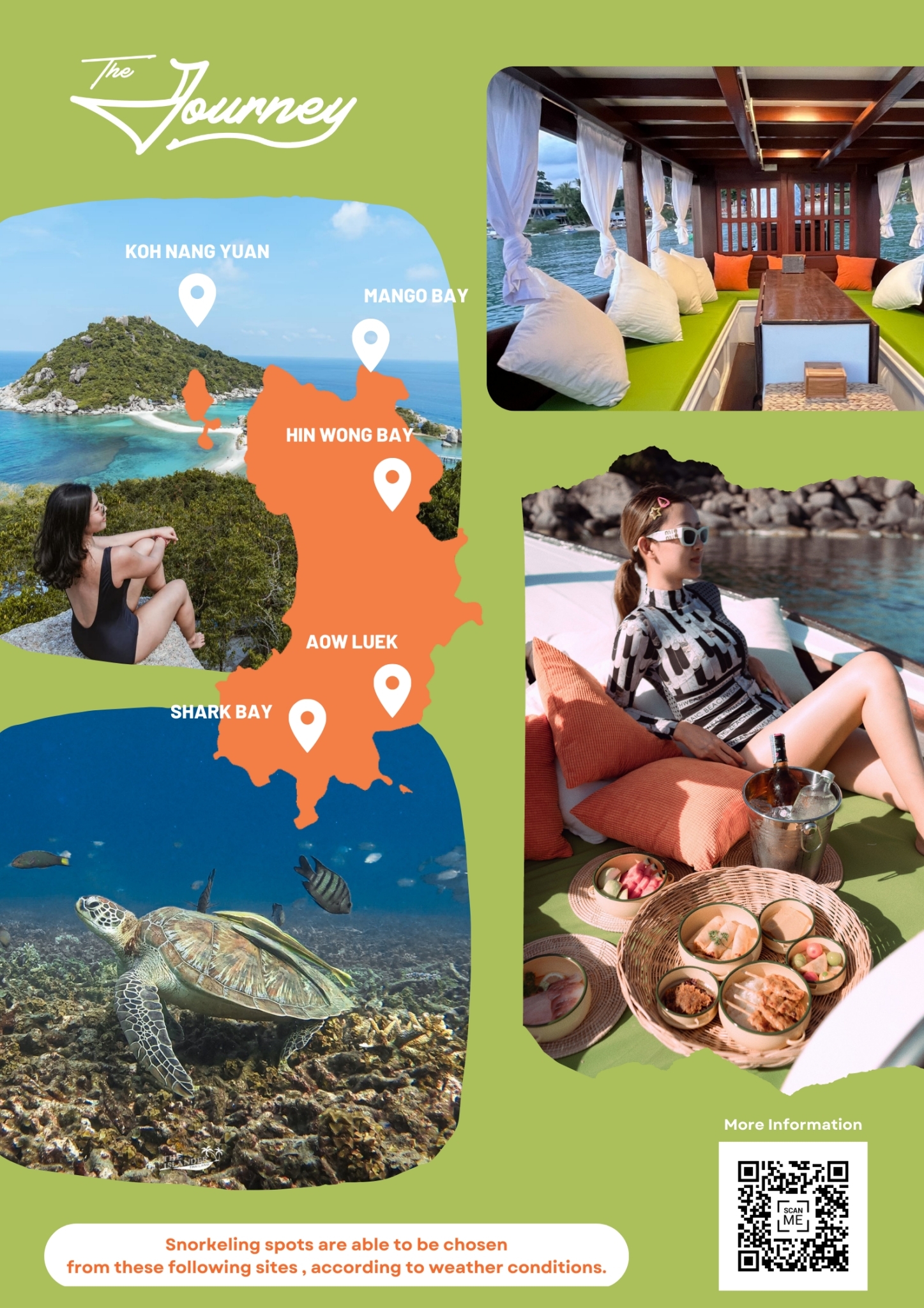 - เปิดประสบการณ์ใหม่กับการล่องเรือไม้รอบเกาะเต่า เกาะนางยวนแบบ Private เหมาลำ เป็นเรือหัวโทงที่ตกแต่งแบบทรอปิคอล ถ่ายรูปทำ Content กันแบบปังๆ สวยทุกมุม ในบรรยากาศสุดชิล พร้อมสัมผัสโลกใต้น้ำ ดำน้ำชมปะการังอันสวยงามของเกาะเต่า ครึ่งวันระยะเวลา 4 ชม.มี 2 รอบต่อวัน